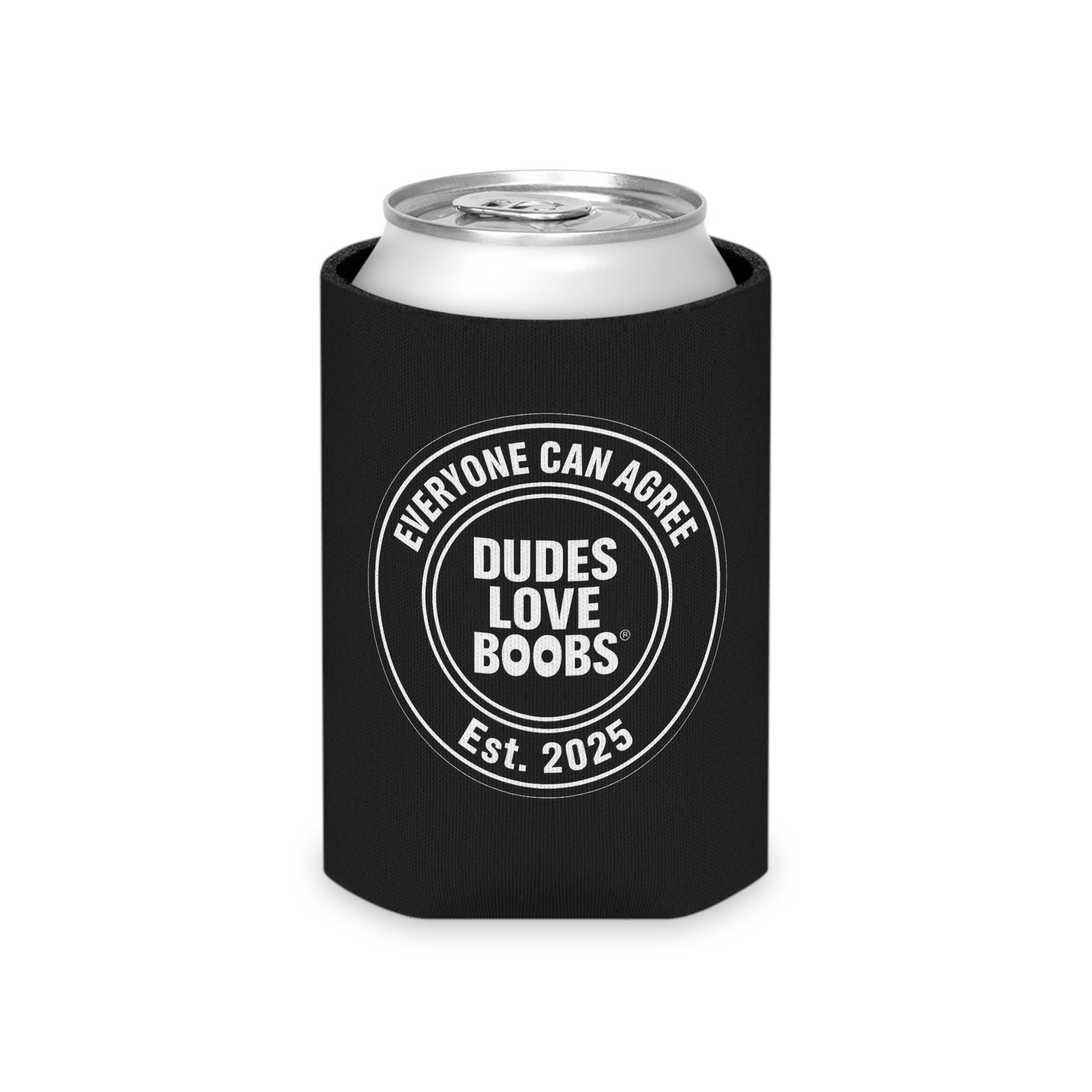 EVERYONE CAN AGREE™ —DUDES LOVE BOOBS® Can cooler Beer Koozie Novelty funny quote